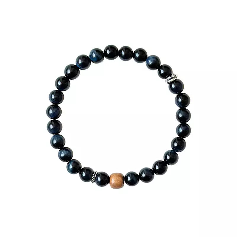 Blue Tiger Eye & Sandalwood Beaded Bracelet
